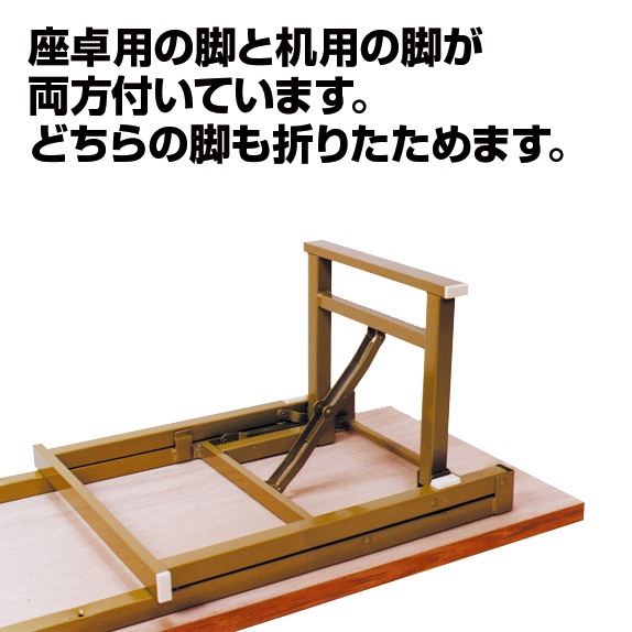 座卓用の脚と机用の脚が両方付いています。どちらの脚も折りたためます。