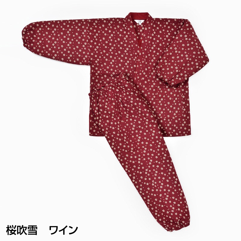 | 仕様 | 上着:左前ポケット×1、ゴム袖、両脇スリット有 ズボン:ウエスト総ゴム紐付き、ポケット右、裾ゴム |