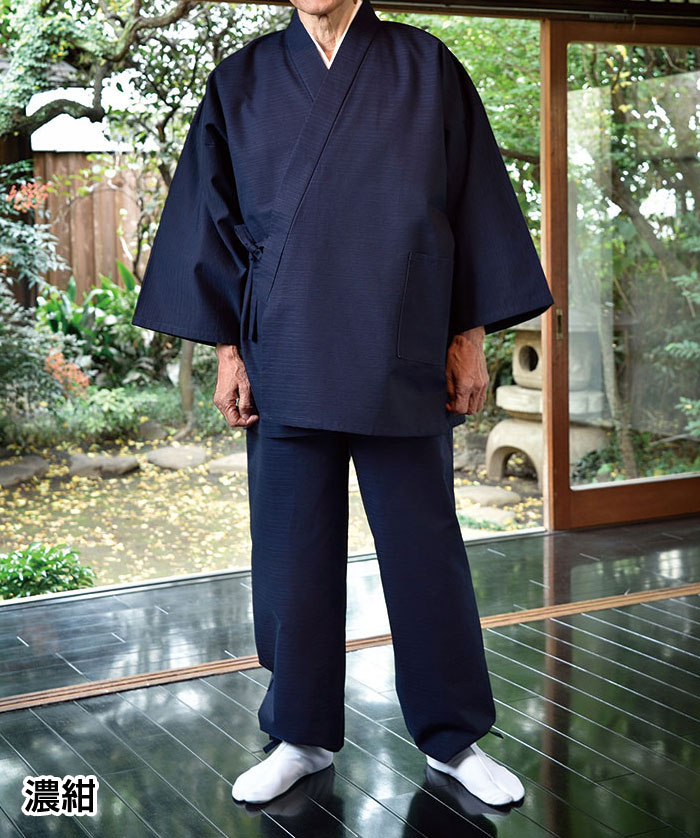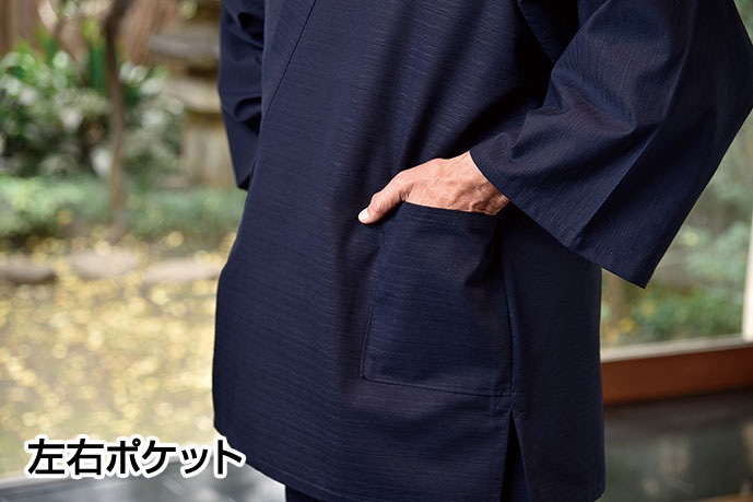 | 仕様 | 上着:左右ポケット、筒袖 ズボン:ウエスト前ボタン後ろゴム、共紐、ファスナー、左右ポケット、ヒモ裾 |