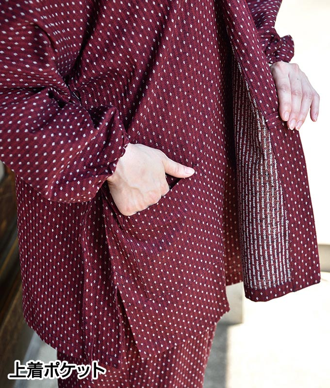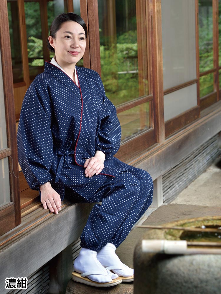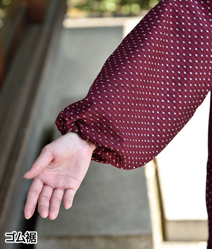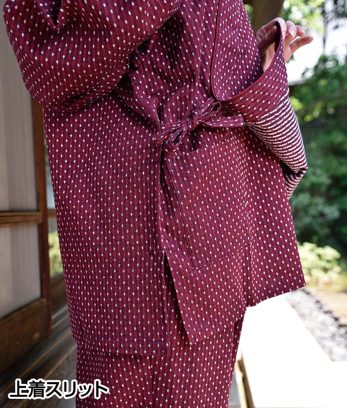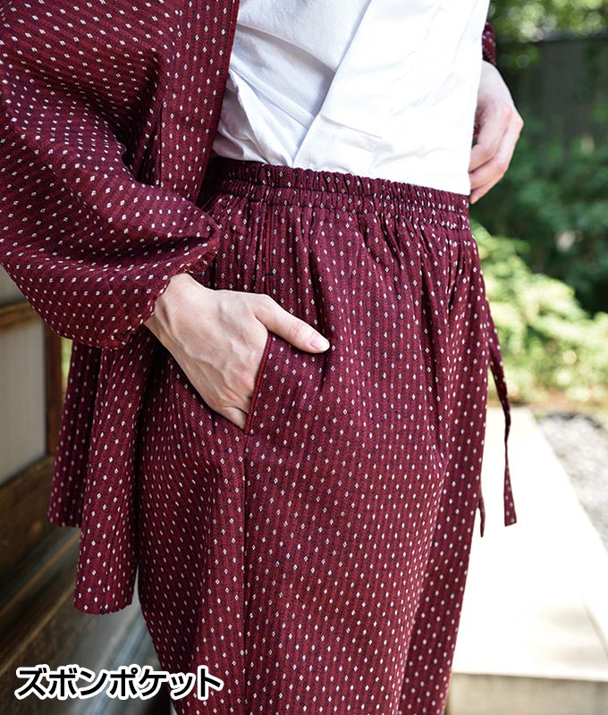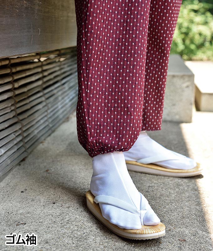ズボンは総ゴムでどんな体型にも安心、上着には身八口があり、体の動きがスムーズで着易さ抜群。