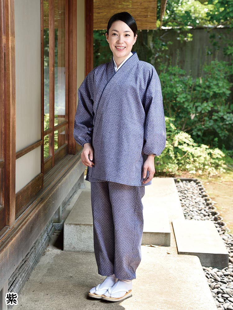 婦人作務衣小柄(濃紺・紫・赤)(M-LL)