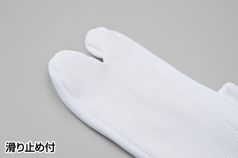 また、口ゴムでずり落ちを防止するとともに、足袋底には滑り止めがありますので、ワックスのかかった廊下や畳の上も安心。