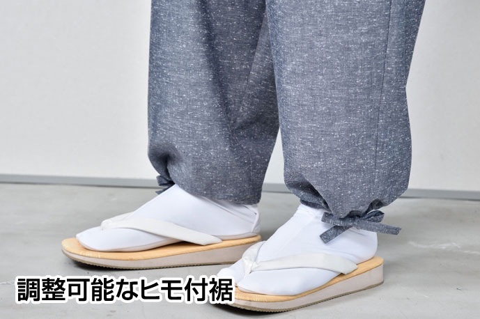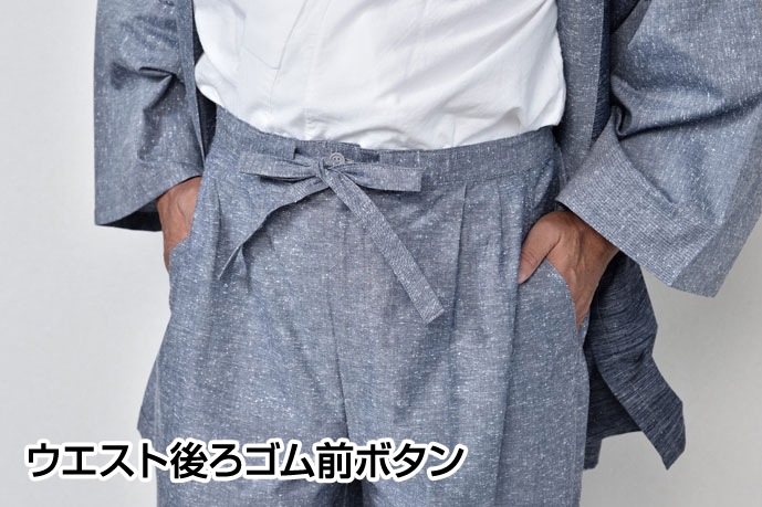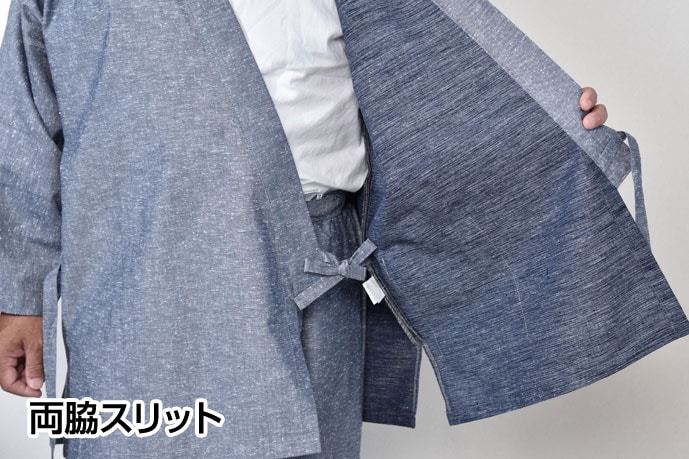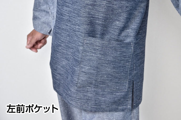 | 仕様 | 上着:左前ポケット、両脇スリット、筒袖 ズボン:ウエスト後ろゴム前ボタン、共紐、左右ポケット、調整可能なヒモ付裾 |