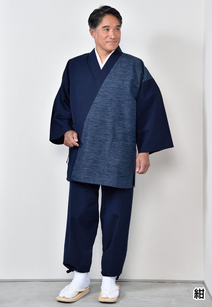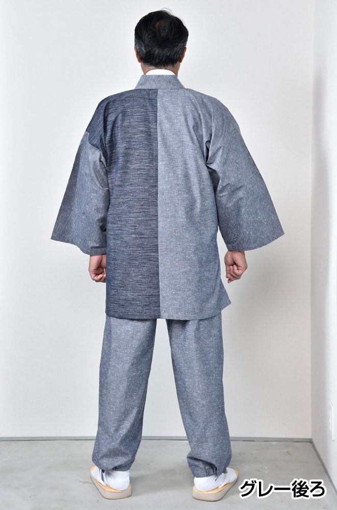切り替え作務衣(グレー・紺)(M-LL)