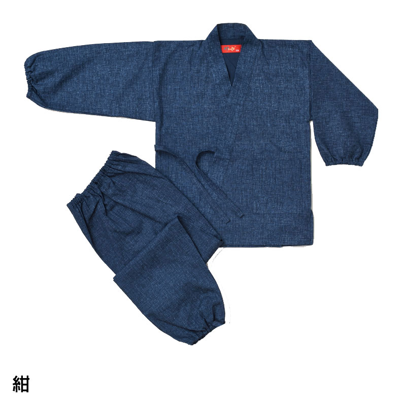 子供用作務衣 紬調(赤・紺)(90-150cm)